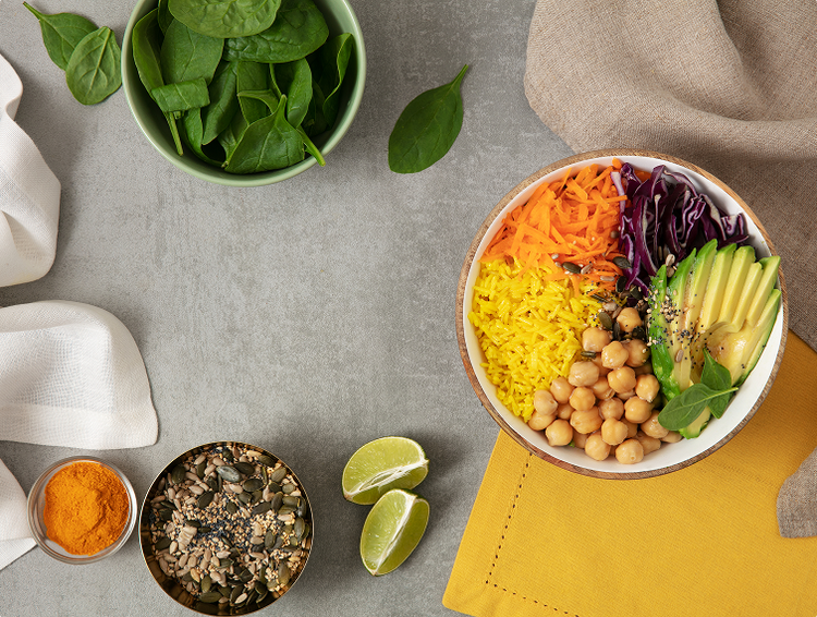 - Posiziona gli spinacini alla base della bowl e distribuisci gli ingredienti in modo ordinato: il riso sgranato con una forchetta, i ceci e le verdure. Aggiungi infine i semi a piacere e condisci con il dressing prima di gustare la tua Buddha bowl. Questa preparazione è ideale per una dieta sana ed equilibrata, perfetta per chi cerca ricette antinfiammatorie.