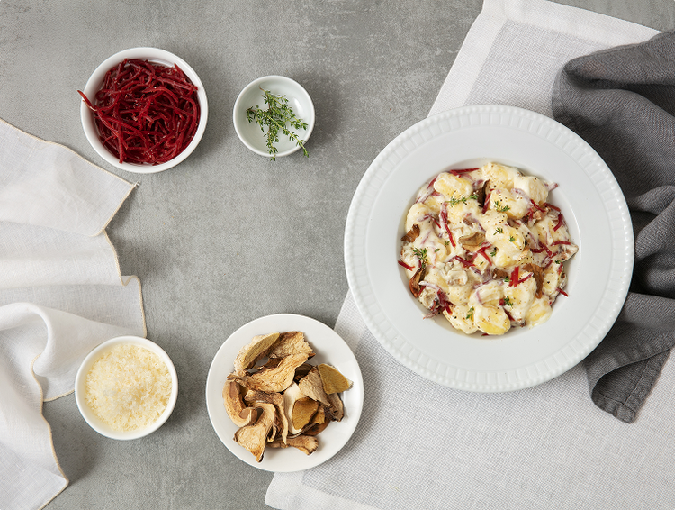 Gustosi gnocchi con funghi porcini, robiola e bresaola