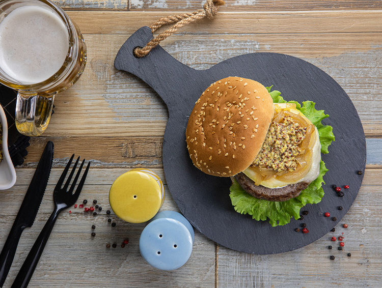 - Prepariamo degli hamburger gourmet con cipolle caramellate! Spalma la senape sulle due metà di pane, poi aggiungi una foglia di insalata, l'hamburger e le cipolle caramellate sulla base. Chiudi il tutto e servi con salse e patatine fritte a volontà.