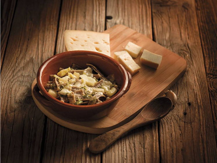 Diffusi in tutta la Valtellina, i pizzoccheri raccontano una cucina concreta, nata dove il grano saraceno era più diffuso del frumento. Un piatto unico e sostanzioso, in cui tutto è cotto insieme, seguendo il ritmo lento della montagna. Proponiamo una versione rivisitata con polvere di funghi secchi e pak-choi che aggiungono nuove sfumature senza snaturarne l’essenza.