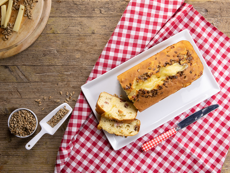- Decora con i semi di girasole e cuoci in forno statico preriscaldato a 180° per circa 35 minuti. Una volta cotto, lascia raffreddare leggermente, sforma, taglia a fette e servi il tuo delizioso plumcake salato con speck e cuore cremoso.