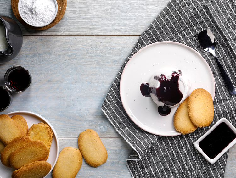 - Una volta trascorse le 4 ore, prendi lo stampo con il semifreddo e rovescialo sul piatto da portata. Accompagna il dolce con una glassa di mirto appena tiepida e delle lingue di gatto. Servi e goditi il tuo delizioso semifreddo al mirto!