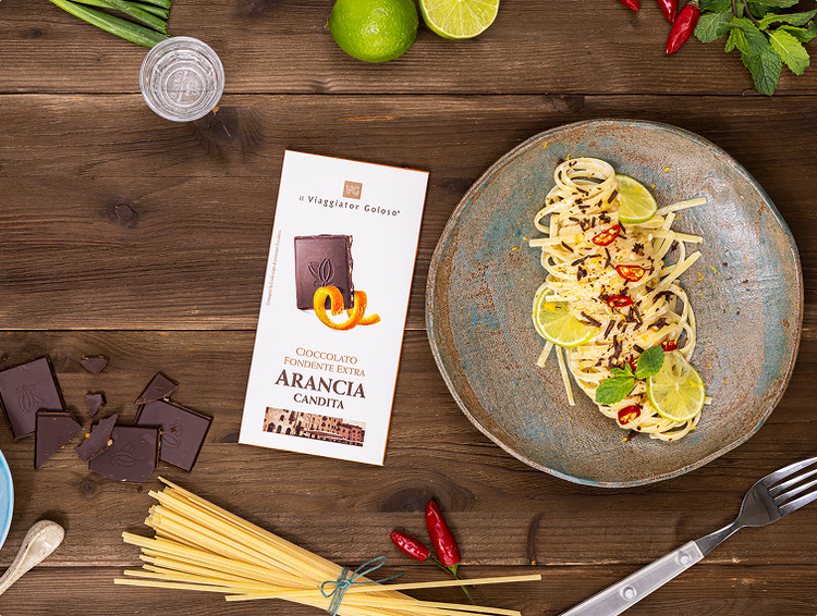 Spaghetti al rum e cioccolato con un tocco di arancia