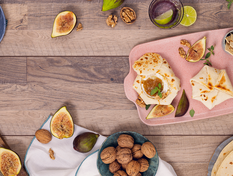 - Taglia la piadina a triangoli, croccantizzala in padella e servi il tomino con i fichi, le noci e i triangolini di piadina da intingere. Un mix di sapori che conquisterà il palato.