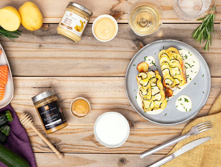 Scopri come preparare un delizioso secondo piatto a base di salmone in crosta di zucchine e patate. l protagonista principale di questa ricetta è l'Aceto Balsamico di Modena I.G.P. marchiato il Viaggiator Goloso®: un prodotto italiano di alta qualità che conferisce un irresistibile tocco agrodolce a un piatto che conquista tutti, anche i palati più esigenti, fin dal primo assaggio.