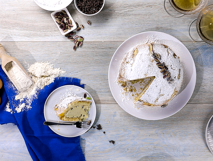 - Per guarnire, cospargi con zucchero a velo e pistacchi sgusciati, quindi servi dopo aver raffreddato bene.